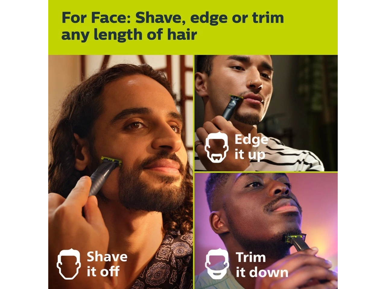 - Philips Norelco OneBlade Original Face is a versatile hybrid styler that let's you shave, trim, or edge on any length of hair
