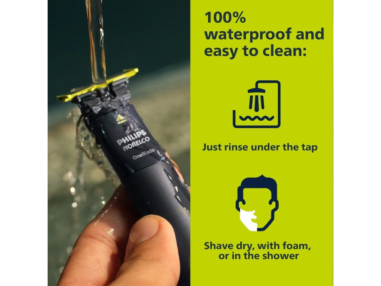- 100% waterproof so you can use in or out of the shower, with or without shaving cream