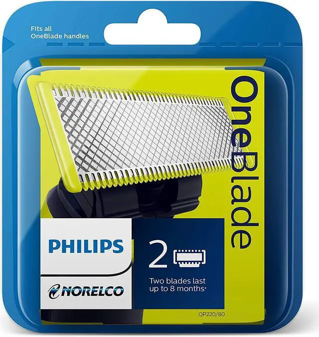 The Philips Norelco OneBlade replacement blade trims, edges, and shaves any length of hair. The unique OneBlade shaving technology integrates a fast moving cutter (200x per second) with a dual protection system to give you an efficient comfortabe shave on longer hairs. OneBlade does not shave too close, so your skin stays comfortable. Two replaceablement blade last up to 8 months* (*For best shaving experience. Based on 2 full shaves per week. Actual results may vary.)