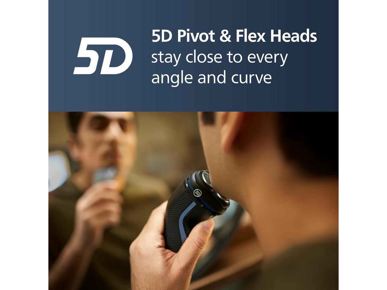 Enjoy a clean shave that follows your face's contours with 5-directional pivot, flex and floating movements. The head reaches your face at the ideal angle and adjusts to the curves of your face and neck, creating smooth contact with your skin