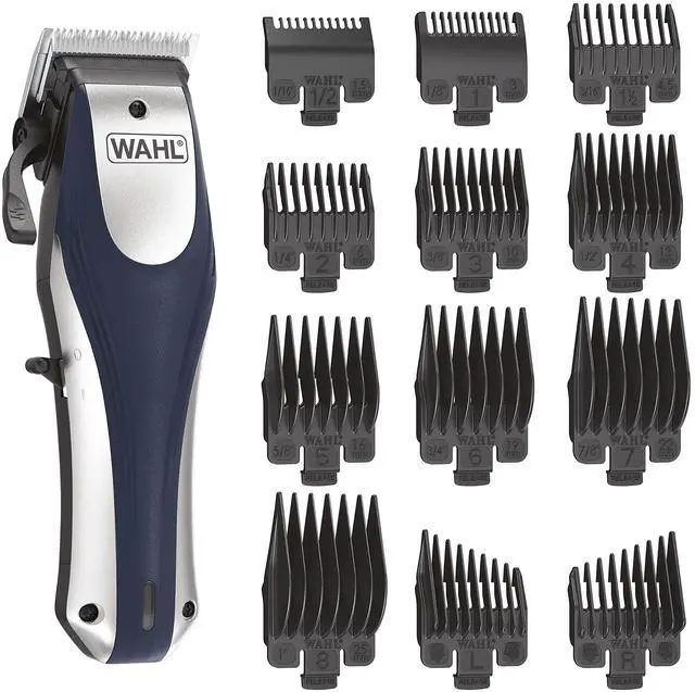 Included in this haircutting kit are 12 individual attachment guards (1/16" - 1", left & right ear taper guards), charging cord, large cleaning brush, barber comb, styling comb, scissors, blade guard, small cleaning brush, blade oil, and a hard handle storage case to hold all accessories.