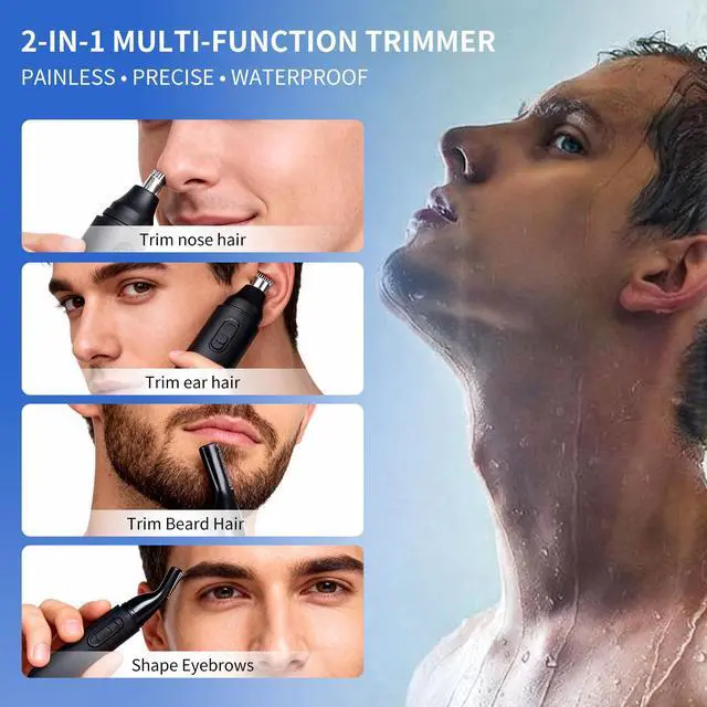 Nose Hair Trimmer for Men & Women, 2 in 1 Eyebrow Trimmer with Dual Replaceable Heads, Nasal Hair Cutter, Painless Multifunctional Clipper, Facial Cleansing & Skin Care Kit, USB Rechargeable