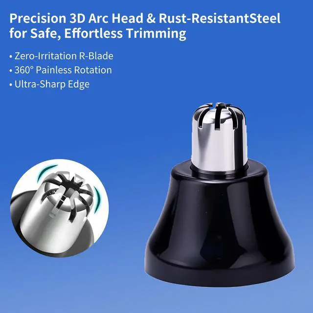 8000 RPM High-Speed Motor & Superior Cleaning PowerGERY nose hair trimmer is equipped with an 8000 RPM ultra-high speed motor, which increases cleaning power by more than 40% compared to ordinary nose hair trimmers on the market. It can quickly and efficiently trim messy nose, ear and facial hair without leaving residues, saving your daily grooming time and bringing a thorough, painless cleaning experience for personal care.
