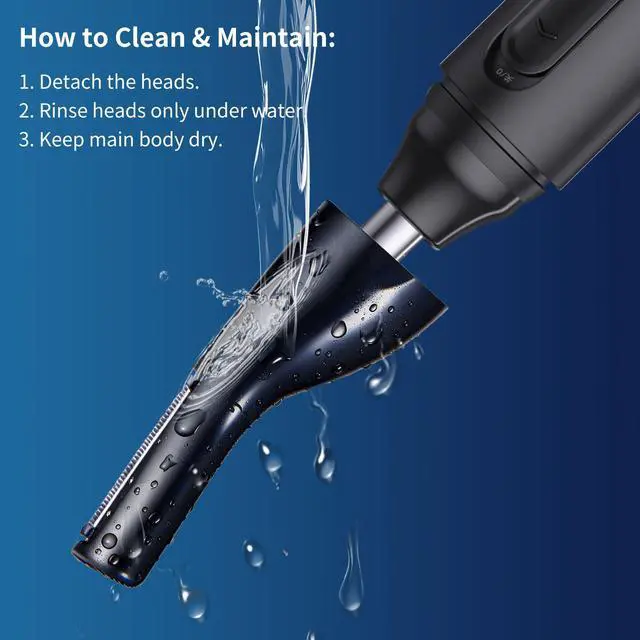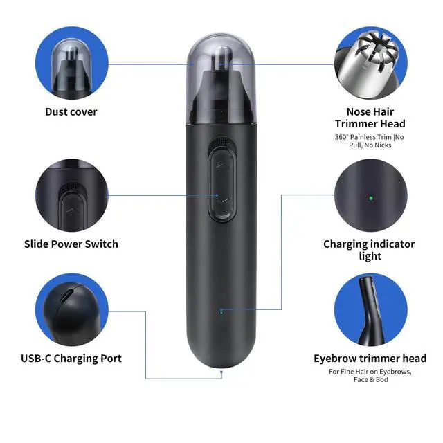 Floating Mesh & 2 Interchangeable Precision HeadsComes with a floating blade mesh and 2 independent replaceable headsone professional nose hair trimmer head and one eyebrow trimmer head. The floating mesh fits the skin closely, ensuring safe trimming without scratching or irritating the sensitive nasal cavity and facial skin, while greatly improving the comfort of use for both men and women, perfect for daily facial grooming.