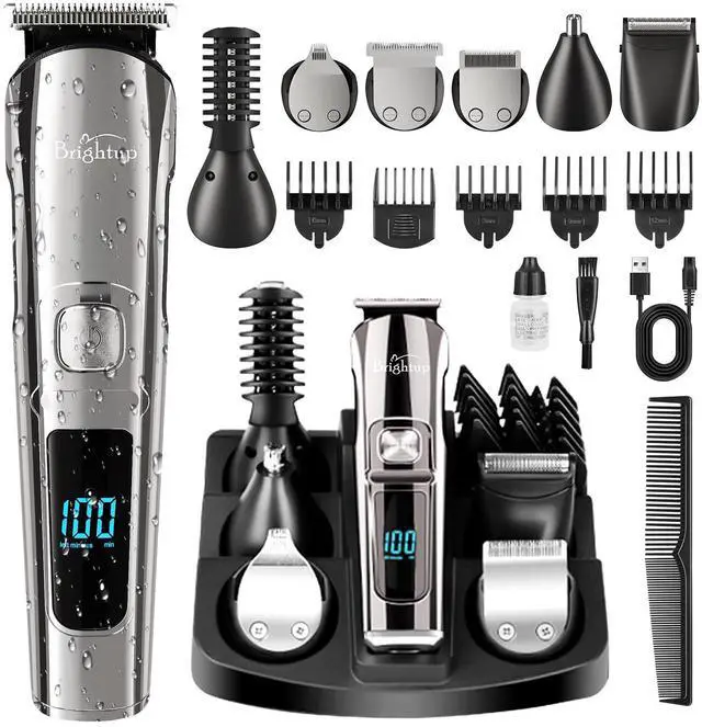 All in One Beard Trimmer for Men Kit: Our Brightup Manscape all-in-one kit is designed for precision beard trimming and includes 6 trimmer heads and a stand base for easy organization. It also comes with 6 hair trimmer combs that allow you to control the length and style of your beard, body, face, nose, ear, eyebrows, sideburns, neck, groin, leg, pubic hair, ball or other private parts.