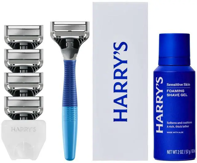 HARRY'S ORIGINAL SHAVE KIT FOR MEN: Includes a Harry's Truman razor handle, five razor blade refills, Harry's Foaming Shave Gel, and a travel blade cover, making it a perfect addition to your TSA approved toiletry bag; Designed for your face, and not recommended for head shaving
