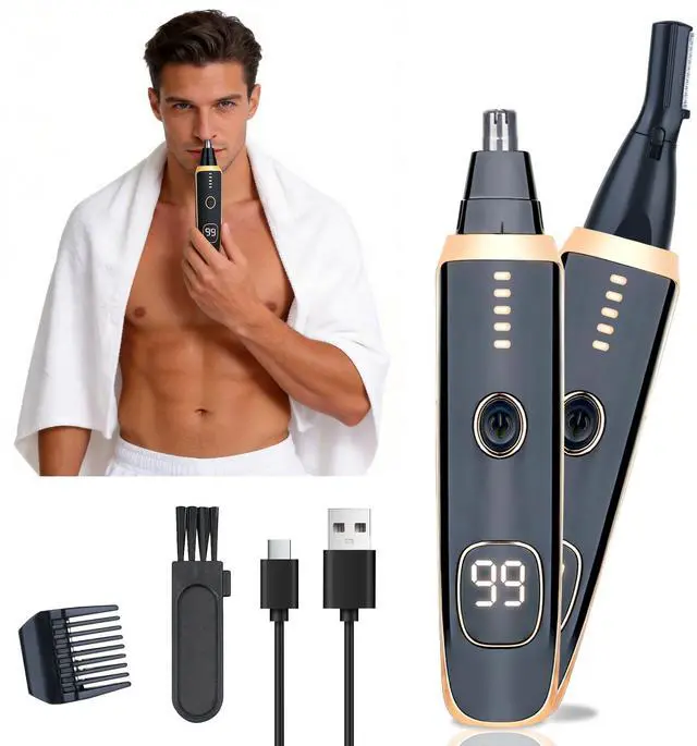 Mendaping 2025 Rechargeable Nose and Ear Hair Trimmer With LED Dispaly for Women Men