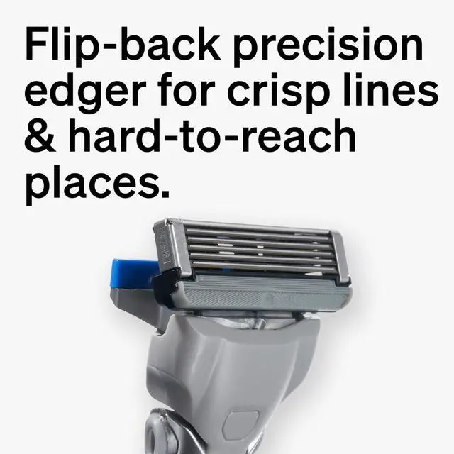 FLIP BACK PRECISION EDGER With a simple flip, this mens razor transforms into a slim precision edger to help you create crisp lines and get at hard-to-reach places.