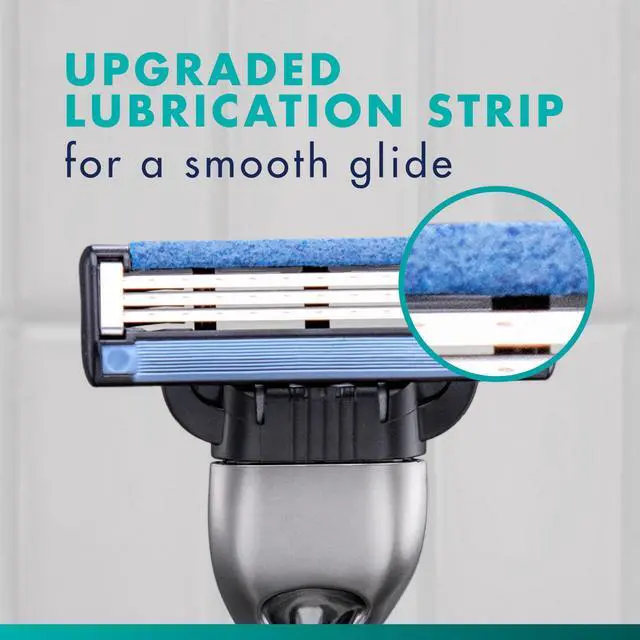 Gillette Mach3 razor's upgraded lubrication strip, 3 blades and microfin guard features