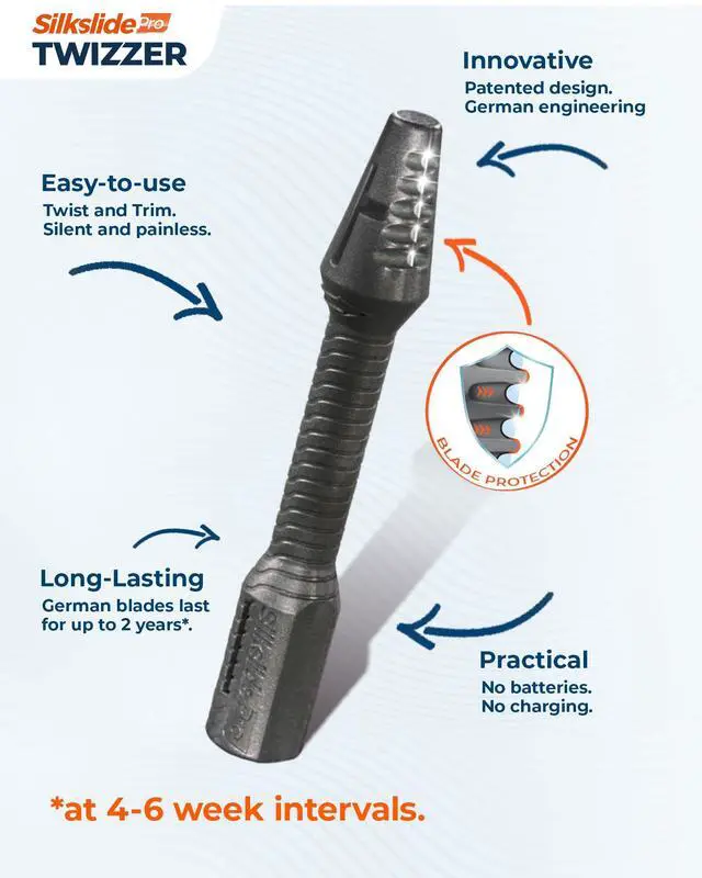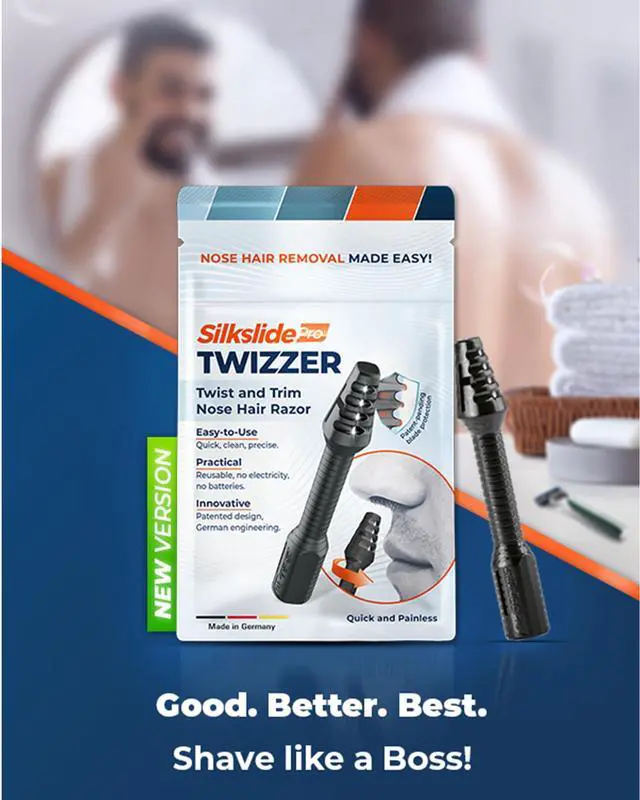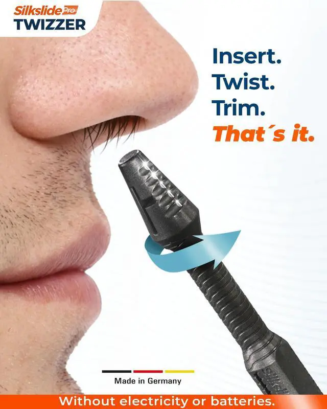 The TWIZZER by Silkslide is revolutionizing nose and ear hair grooming. This patented nose hair trimmer combines German engineering and precision blades for the ultimate nasal hair removal experience. Perfect for men and women, it’s simple to use, requires no batteries or charging, and delivers clean, precise results every time. Designed to last up to two years, it’s the best choice for hassle-free nose and ear hair trimming.