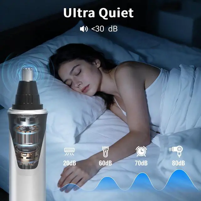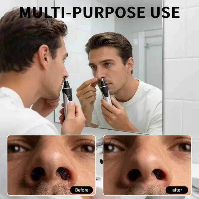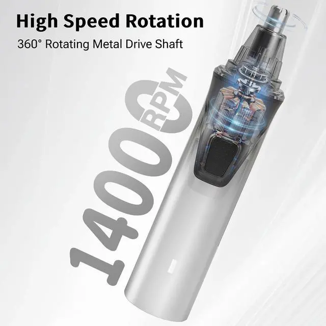 14000RPM High-Speed Motor for Painless TrimmingEquipped with a powerful 14000RPM motor and dual-edge stainless steel blades, this nose hair trimmer cuts quickly and smoothly without pulling or tugging. Enjoy a pain-free, precise grooming experience for nose, ears, and eyebrows in just seconds.