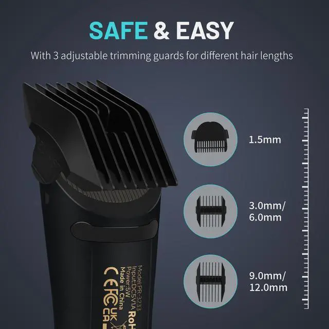 Safe and Efficient Trimming: PRITECH manscaper for men body hair trimmer uses ceramic blades with built-in protection. On the surface where the blade contacts the skin, we have implemented a chamfered design, ensuring that it never cuts, pulls, or irritates the skin, and guarantees efficient hair trimming. This body trimmer for men equipped with 3 adjustable comb attachments and 5 lengths (1.5mm, 3mm, 6mm, 9mm, 12mm), it meets your diverse trimming requirements