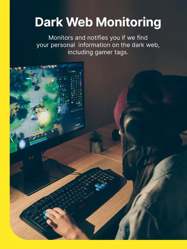 We monitor the dark web and notify you if we find your personal information, including your gamer tags, usernames and email addresses.