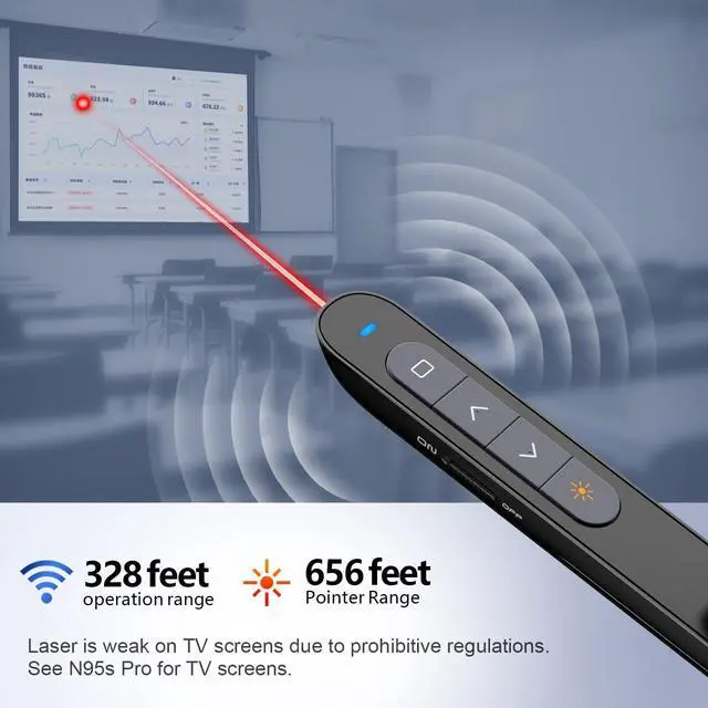 If the computer is placed in the cabinet, or you make presentation in a large crowded classroom, the complex environments will affect the sensitivity of the control. 328 feet of extra-long control distance can effectively resist the attenuation of the signals and keep high sensitivity and stability