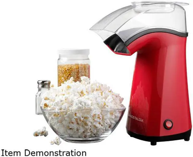 | Features | The Nostalgia Electrics APH200BLUE Air Pop Hot Air Popper is a table-top sized party pleaser. In just minutes, family and friends can enjoy the taste of freshly popped popcorn! Its electric popping system uses hot air instead of oil, producing a light and healthy snack. This popcorn maker comes with a measuring cap that assures the proper amount of kernels is used in each batch. Enjoy the fresh taste of hot popcorn in minutes! 4 ounce kernel capacity, makes up to 16 cups of popped popcorn per batch Healthy, oil-free popping Includes kernel measuring cap Countertop size Very little assembly required |