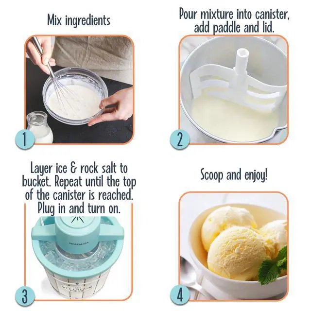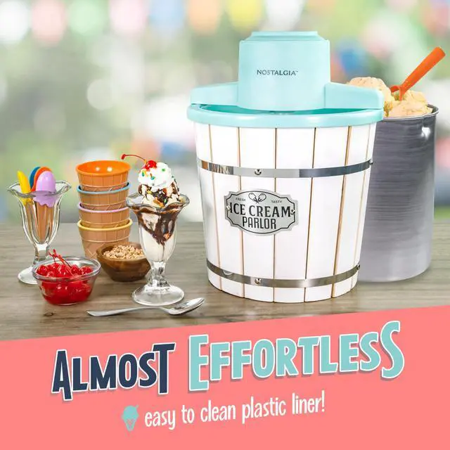 Gather the whole family and enjoy a fun-filled ice cream-making experience with Nostalgia's Electric Ice Cream Maker. You can make ice cream, sorbet, and gelato whenever and wherever you want. Add your ingredients into the aluminum canister, place in the middle of the bucket, layer with ice and salt, and let the electric motor do the rest. Customize each recipe by adding extras, like strawberry preserves, cookie dough, candy, and cookie pieces. When you're all done, use the included lid and cap to store leftover ice cream in the freezer.