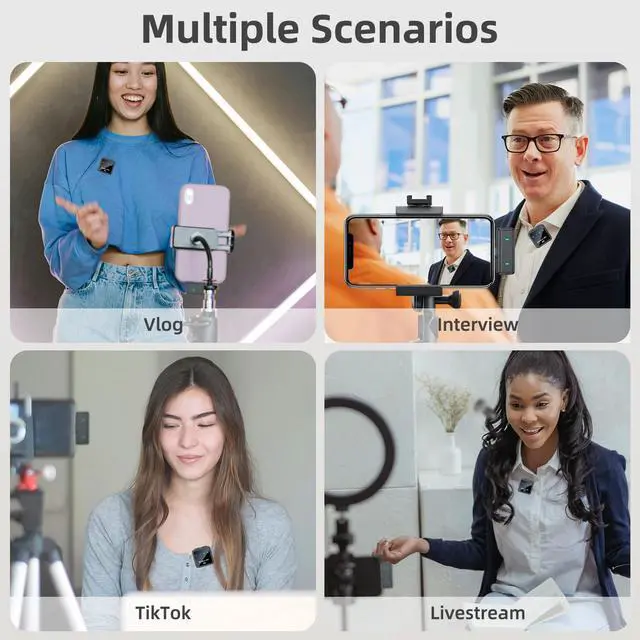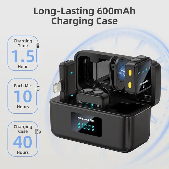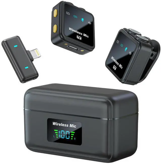 With premium DPS noise reduction chip, this wireless microphone for iphone can block out those annoying background noise. Also, you can choose to turn on or off the phone mics' noise cancellation by clicking the mode button to better suit different recording needs. Also You can change the gain level from level 1 to 3 to adjust the mics' volume up or down to your various recording needs. This sleek little usb c wireless microphone is especially designed for youtuber, tiktoker, vlogger and livestreamer, helping content creator make better audio or video content. Clear & Omnidirectional Recording: This wireless lavalier microphone for iPhone is omnidirectional, capable of picking up the sound from 360 degree surrounding. The premium chip enables the phone microphone to record stably and clearly, delivering crystal clear sound for your videos. This lav mic for iPhone is suitable for content creator making youtube videos, tiktok short, instagram reels, vlogging and livestreaming. 10H & 75Ft Recording: Each lapel microphone wireless can work up to 10 hours and the charging case is able to provide extra 20 hours for these dual lapel mics, so you don't need to charge time over time for extensive use. For recording at a long range distance, the cordless lavalier mic is able to record clear and stable sound far from 75 feet/20m, making it possible for you to make more creative videos with less limit. Plug & Play: Simply plug in the receiver to your phone, and press to turn on the lapel mic, then you can start recording with no app / bluetooth needed. With the back clip, you can clip the mini mic to your collar. With the magnetic clip, you are able to flexibly attach the mini microphone usb c to your shirt or hat. Wide Compatibility: This wireless mini microphone is compatible with iPhone 14/13/12, iPad 7/8/9/mini 3/4 series.