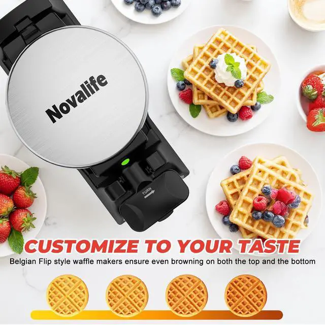 • STAINLESS STEEL WAFFLE MAKERNovalife double-layer waffle maker is newly upgraded and made of stainless steel, which is scratch-resistant, long-lasting, durable and easy to clean.
