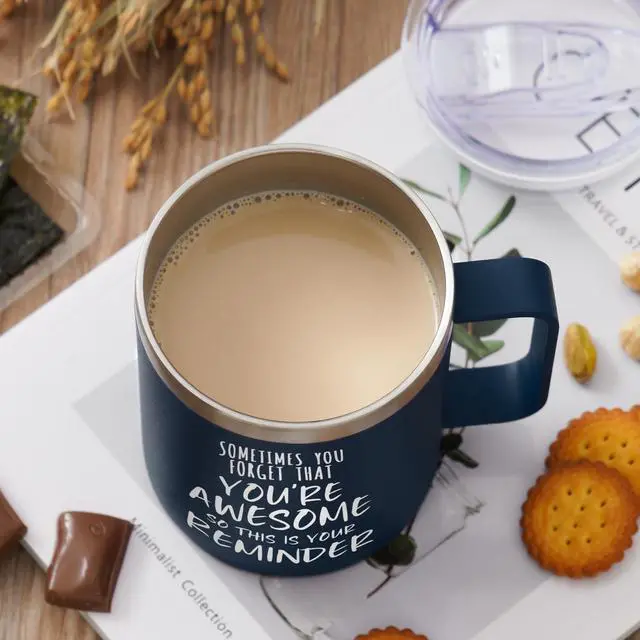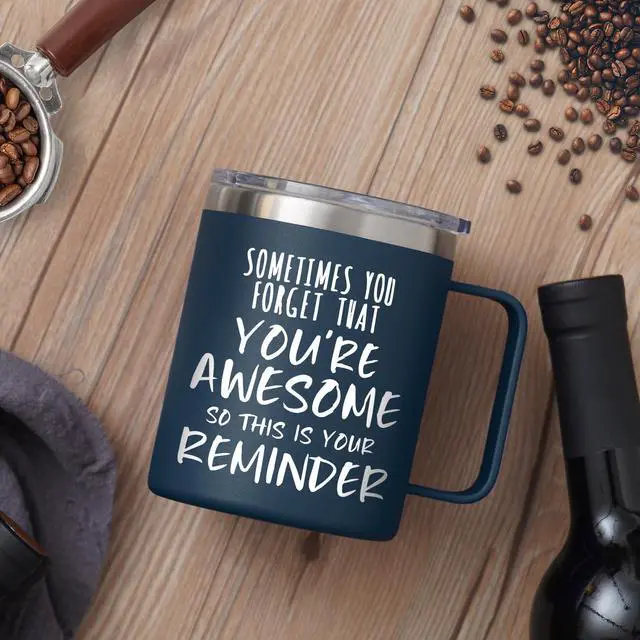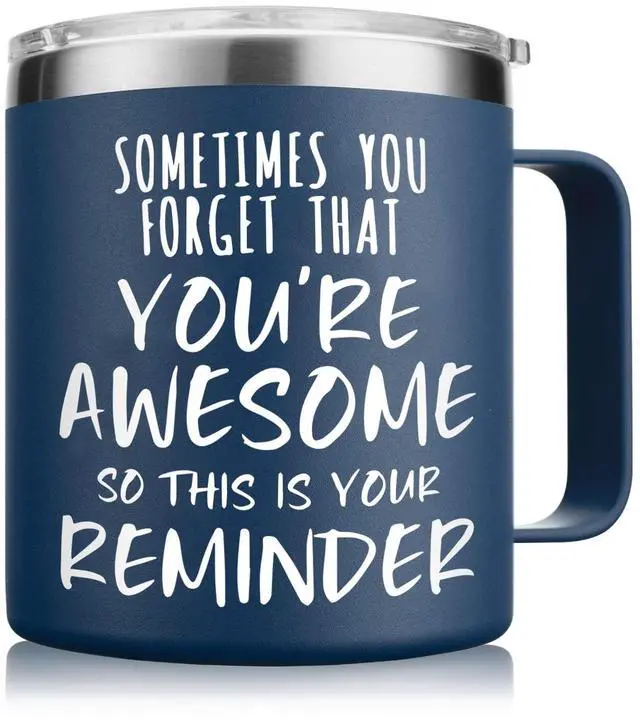 Inspirational Coffee Mug for Men, 14oz Vacuum Insulated Stainless Steel Cup, You Are Awesome Gift for Husband, Boyfriend, Dad - Navy Blue
