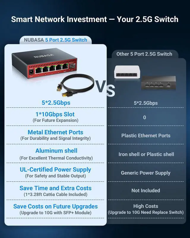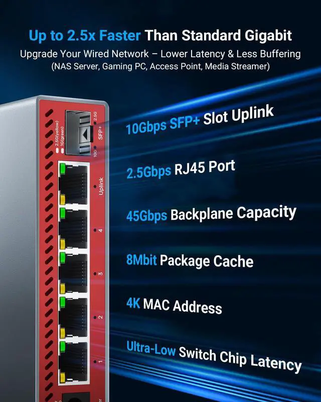 | Cat 6 or above for full 2.5G | Cat 6 or above for full 2.5G | Cat 6a or above for full 10G | Cat 6a or above for full 10G | Cat 6 or above for full 2.5G |