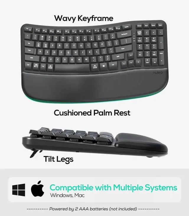 Nulea RT08 Wave Keys Wireless Ergonomic Keyboard