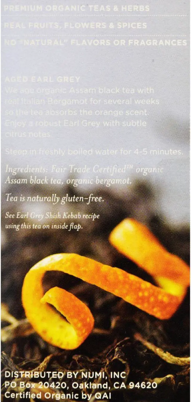 Savor the traditional flavor of this Numi organic Aged Earl Grey tea.