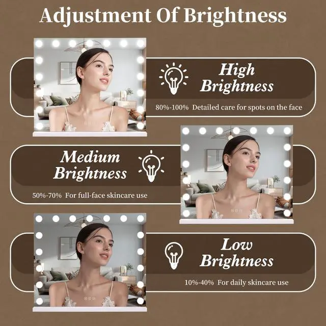 This makeup vanity mirror is an essential makeup tool for every bedroom. The frame is made of high-quality iron, which is built to last and more fashionable. It will help you complete your routine beauty perfectly, with adjustable brightness and 3 light colors! Even you're a newcomer to makeup, you can achieve flawless professional makeup with this mirror.