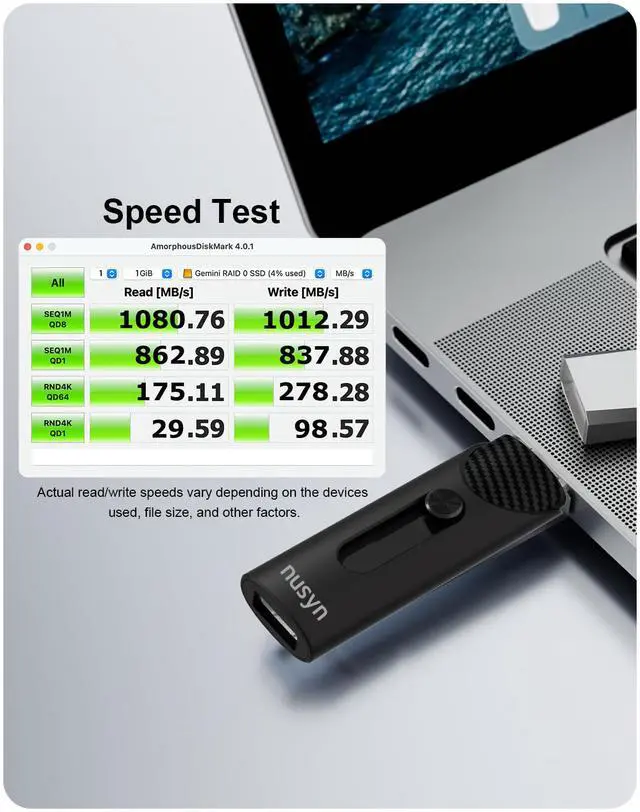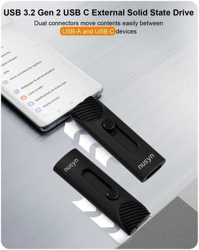 Nusyn NSU53 1TB External SSD / USB Drive - Up to 1050MB/s, 2-in-1 USB-C + USB-A, USB 3.2 Gen2, Portable Solid State Drive for iPhone 15/16+, Android Phones/Tablets, PS4, Windows & Mac - Fast File Transfers for Creators & Photographers
