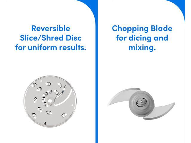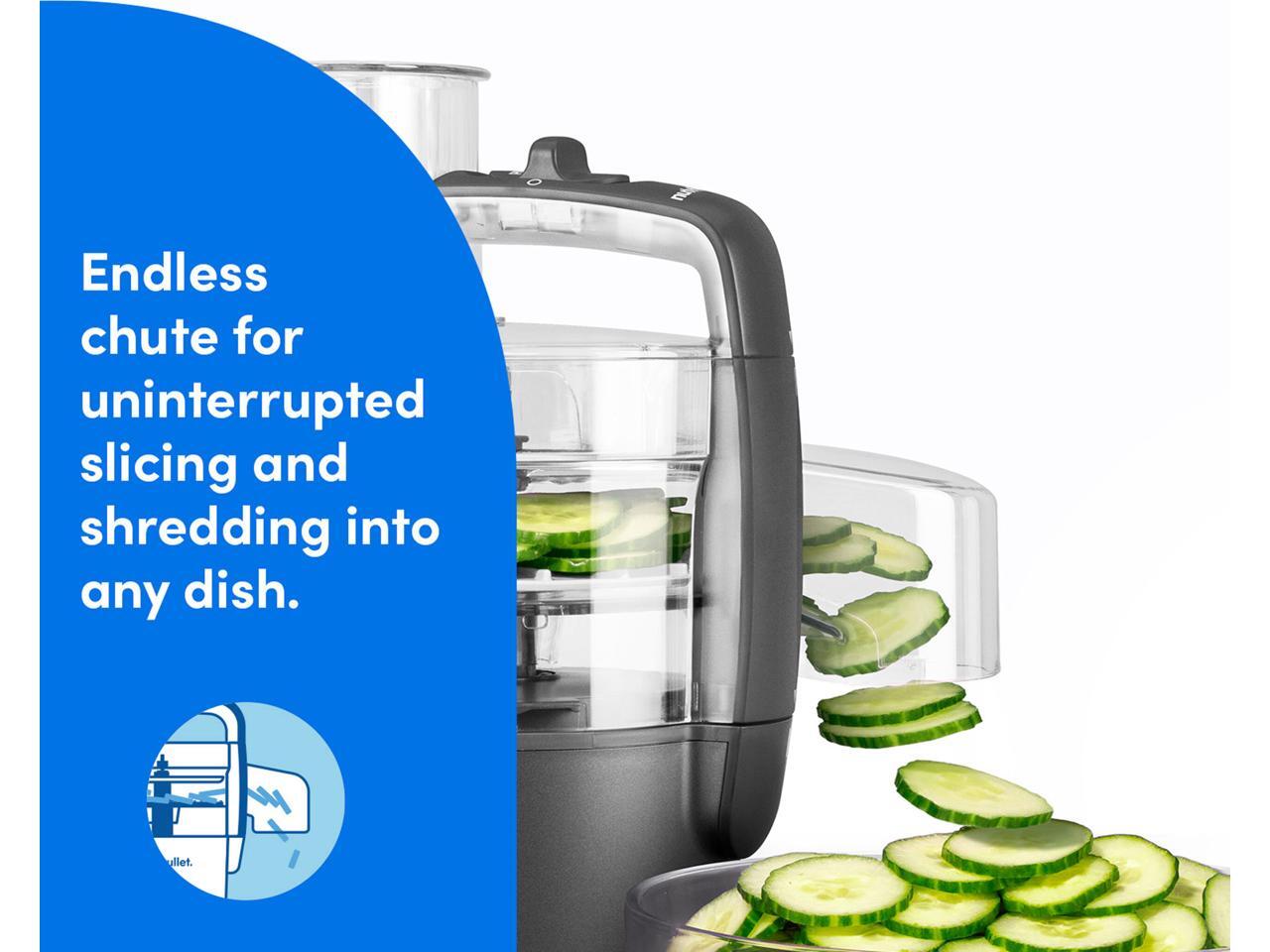 - A 2-in-1 food processor with mixing, slicing, and shredding capabilities, plus an endless chute that processes directly into any dish for efficient, high-volume prep.