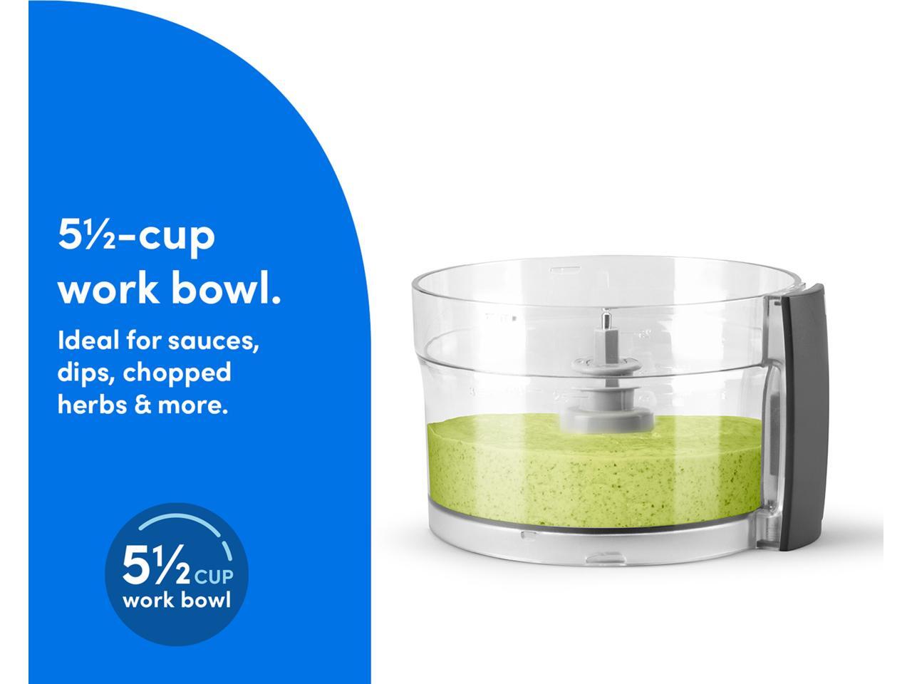 - 5 ½ - cup work bowl? is ideal for prepping sauces, dips, purees, and smaller batches of chopped herbs and veggies.