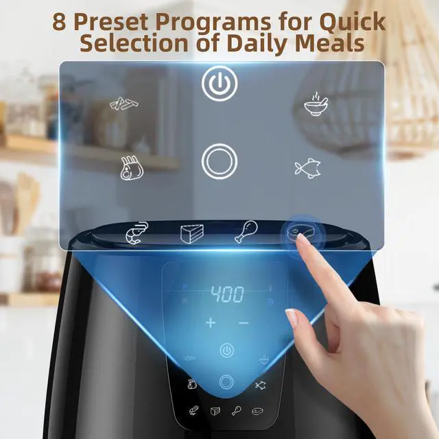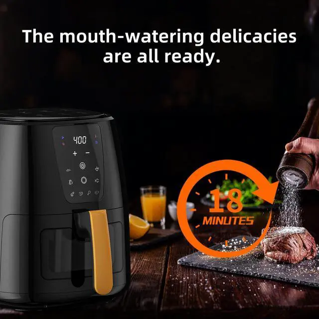 5.8 QT Digital Air Fryer with Window for Kitchen Use,Nonstick Made without PFAS, Touchscreen Display,160°F~400°F in Precise 5°,Customized Temp/Time,NonStick Basket,Black