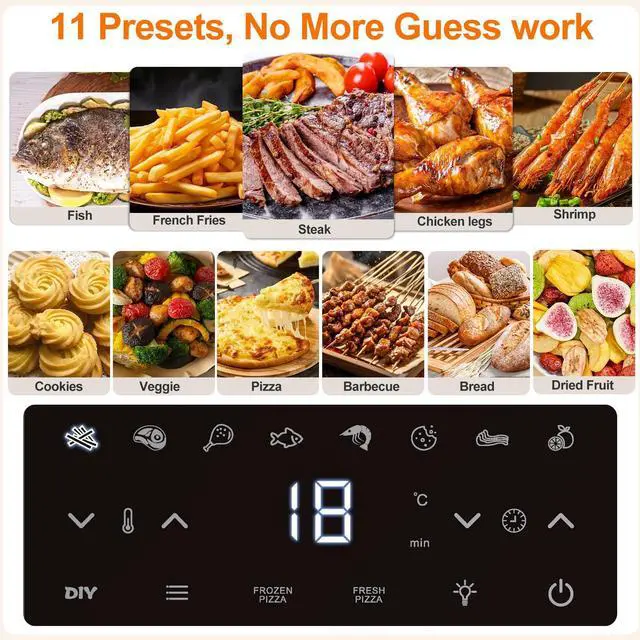 ? This air fryer with 11 presets includes Air Fry, Bake, Roast, Grill, Pizza, and Dehydrate functions.