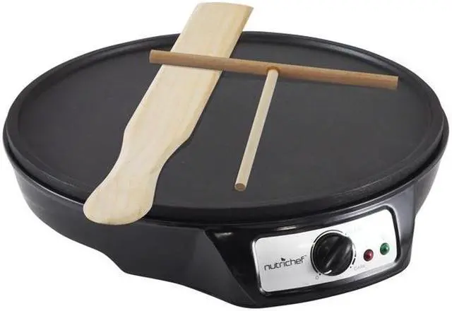 | Features | Simple Crepe & Blintz Cooking Compact, Quick & Convenient Cooktop Temperature Adjustable Rotary Dial Aluminum Griddle Hot Plate Non-Stick Construction Great for Cooking Breakfast Eggs, Bacon, Pancakes Cooking Surface Diameter: 12'' Inch Safe for Any Countertop, Tabletop, Kitchen Top Ultra Quiet Operation LED Indicator Lights Power Cord Length: 2.5' Feet Power 120V, AC High-Powered Heating Element, 1200 Watt |