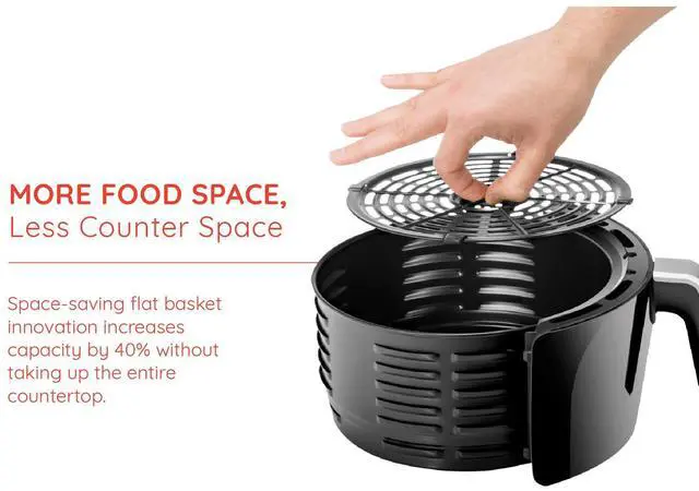 The 3.5 L digital air fryer uses rapid air technology to produce dishes with a crispy fried Texture using little or no oil cooking your favorite foods faster healthier and to perfection With this truly versatile air fryer you can cook fried or roasted food bake a full range of delicious healthy dishes and even reheat your leftovers for a quick and easy meal You never have to worry about burning or drying out your food - the digital temperature control with 60-minute timer automatically shuts off once food is done! The detachable flat basket cool-touch exterior and auto-shutoff features ensure added safety and security Compact 3 5-Liter frying basket is removable and dishwasher safe so your meal is as easy to clean as it is healthy and delicious