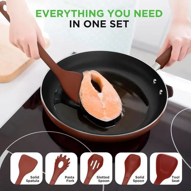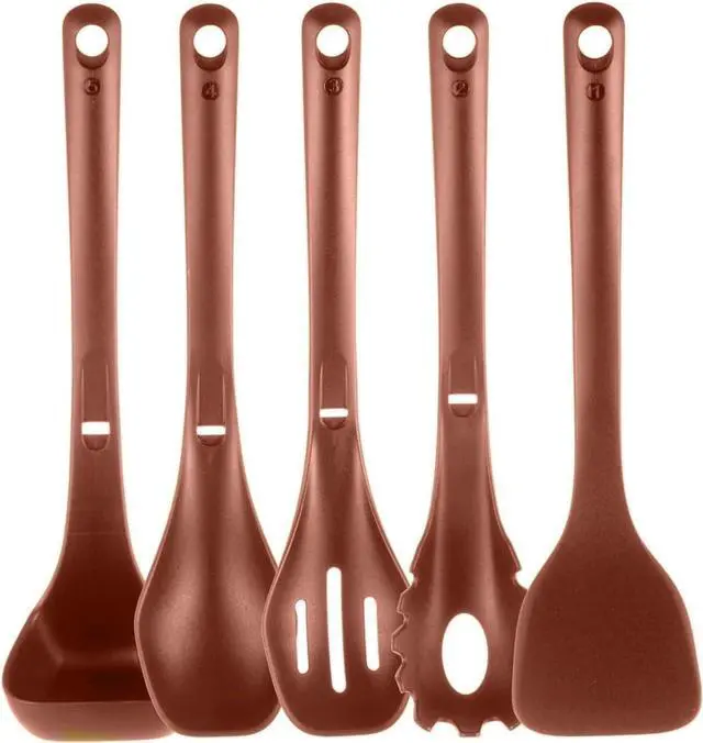 Perfect for non-stick cookware, these utensils feature a flexible yet sturdy construction, ensuring excellent performance without scratches. The environmentally friendly and easy-to-clean design makes this brown utensil set a stylish and practical addition to your kitchen essentials.
