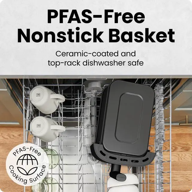| Special Features | 4 Cooking Functions, 450°F Maximum Temperature, Automatic Shake Reminders, Dishwasher-Safe Parts, PFAS-Free Cooking Surfaces, Ultra-Compact Thin Design |