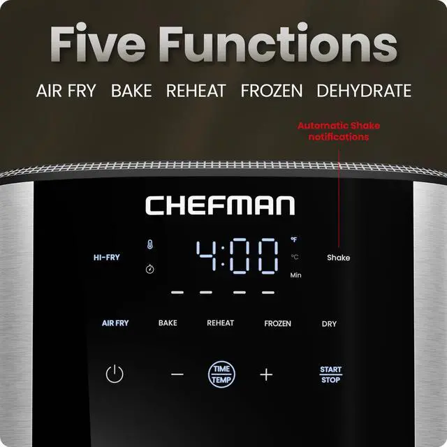 | Special Feature | 450°F Hi-Fry Button, 5 Cooking Functions, Automatic Shake Notifications, Digital Touch Controls, Nonstick and Dishwasher-Safe Parts, Stainless-Steel Finish |