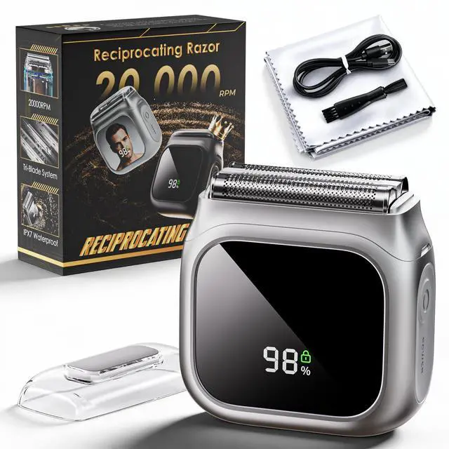 Dust-Proof Magnetic Cover: Keep it clean and ready! The magnetic dust cover securely attaches to the razor, shielding the blades from debris and ensuring longevity. Always have a pristine shaving experience at your fingertips.