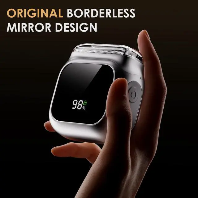 Electric Razor for Men, Innovative Mirror-Like Design, Beard Trimmer for Men with 20, 000 RPM Motor, LED Display, 3 Floating Blades, IPX7 Waterproof, Mini Men's Foil Shavers - Perfect for Travel & Home Use