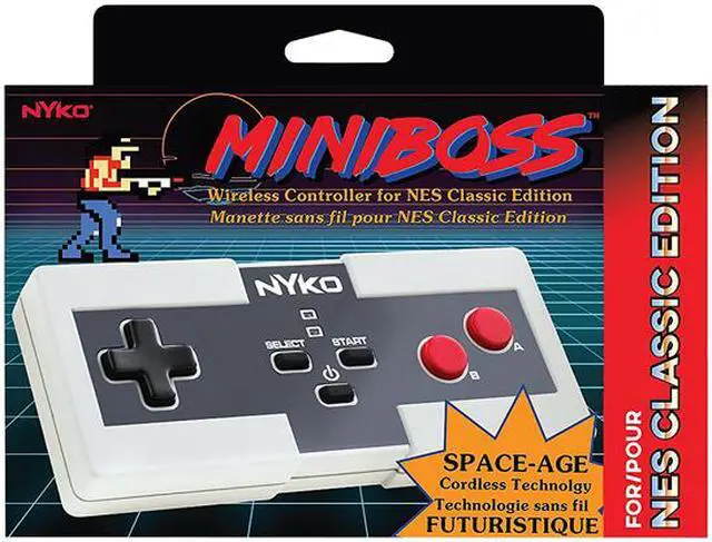 | Feature | Conquer any game and get the Hi-Score with Miniboss for NES Classic Edition. Miniboss features SPACE-AGE Cordless Technology allowing cord-free play from up to 30 feet away. Cords are so yesterday and cordless is the future! Sit back in comfort to enjoy the classics! No need to be close to the television. Two offset ergonomic face buttons gives you the precision needed to make those jumps, avoid beams and for mass button mashing action. Two is all you need! The rad 4-way directional pad is perfect for up, down, right and occasional left movement. |