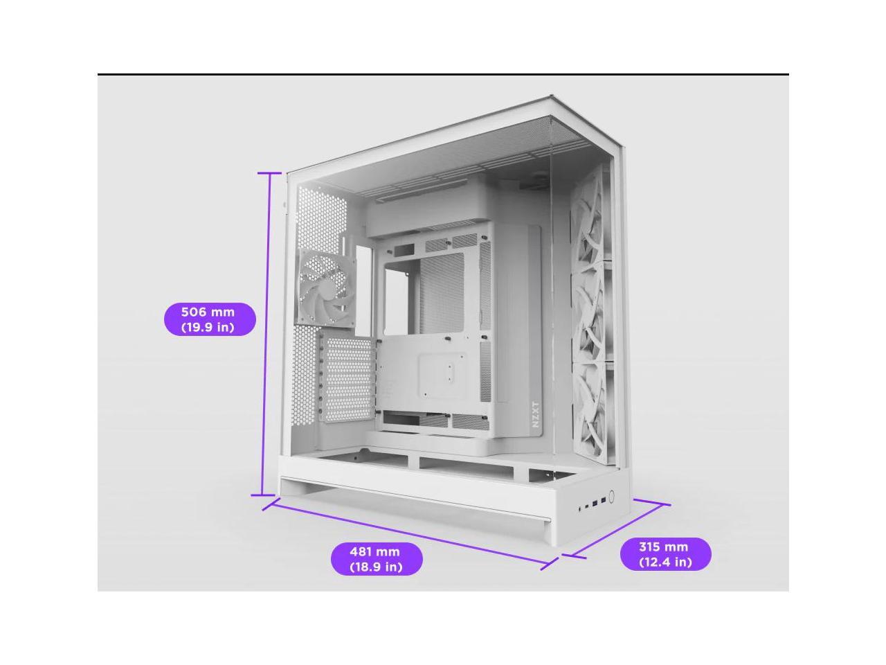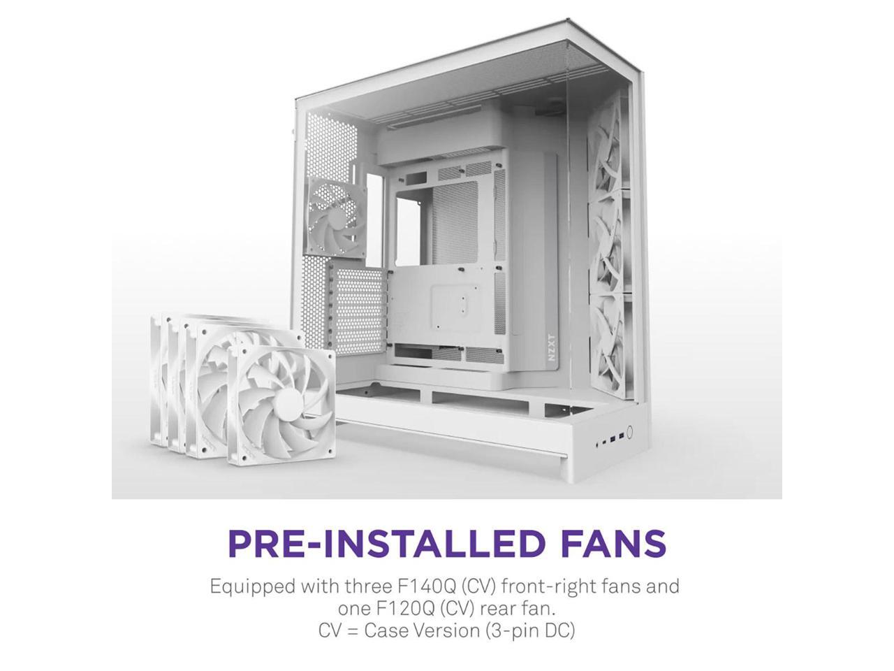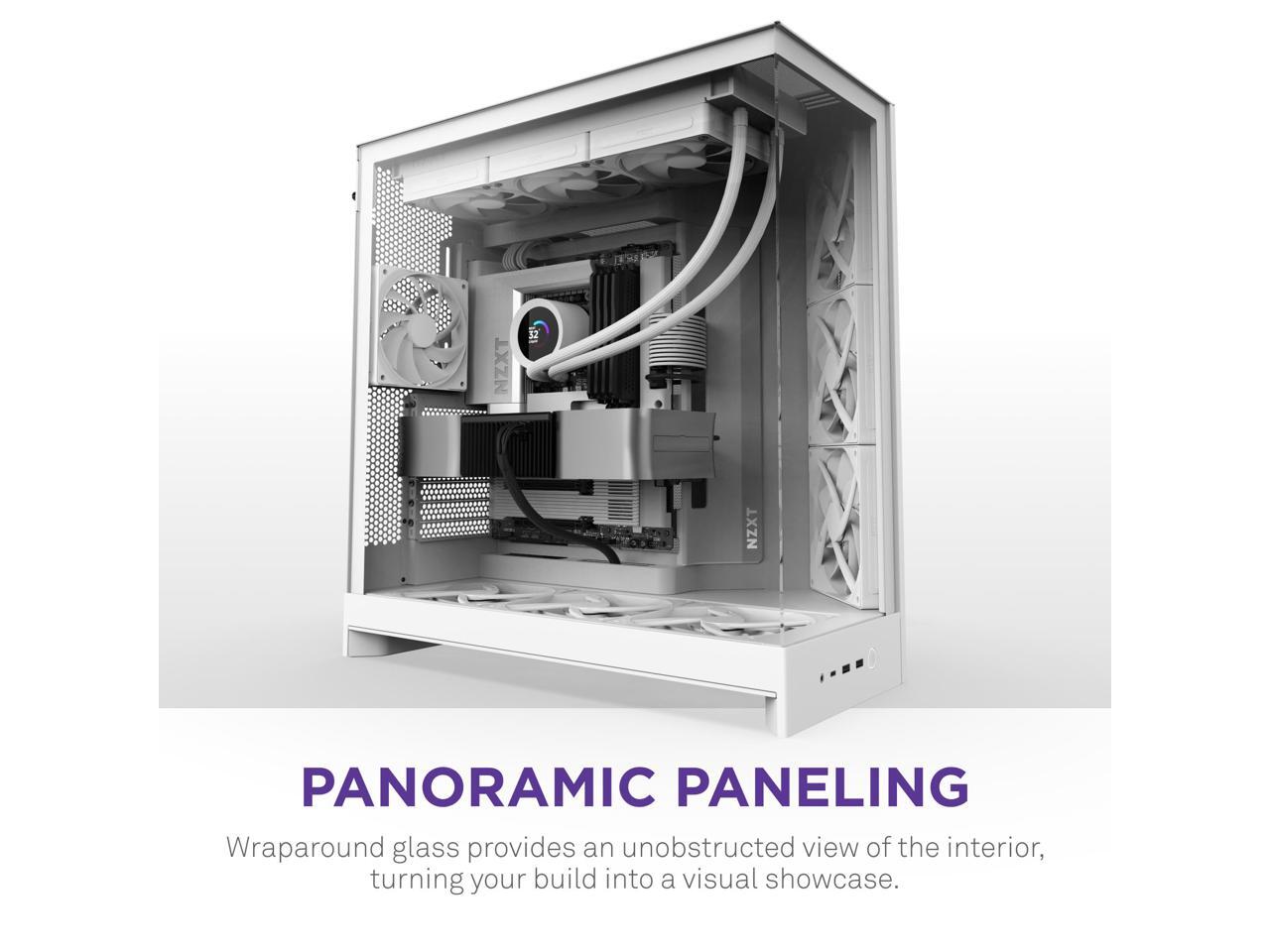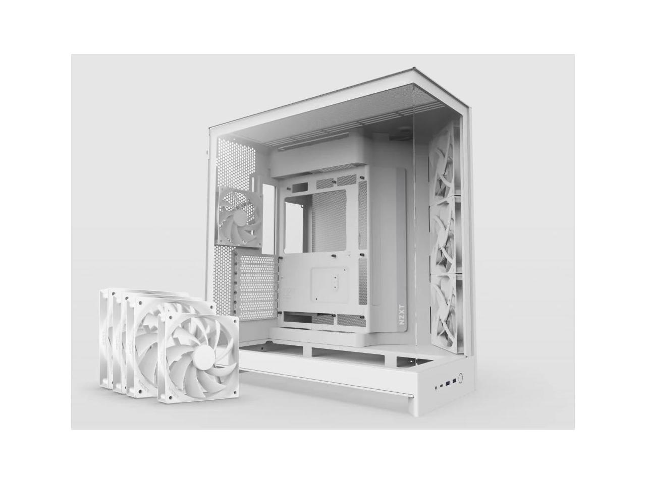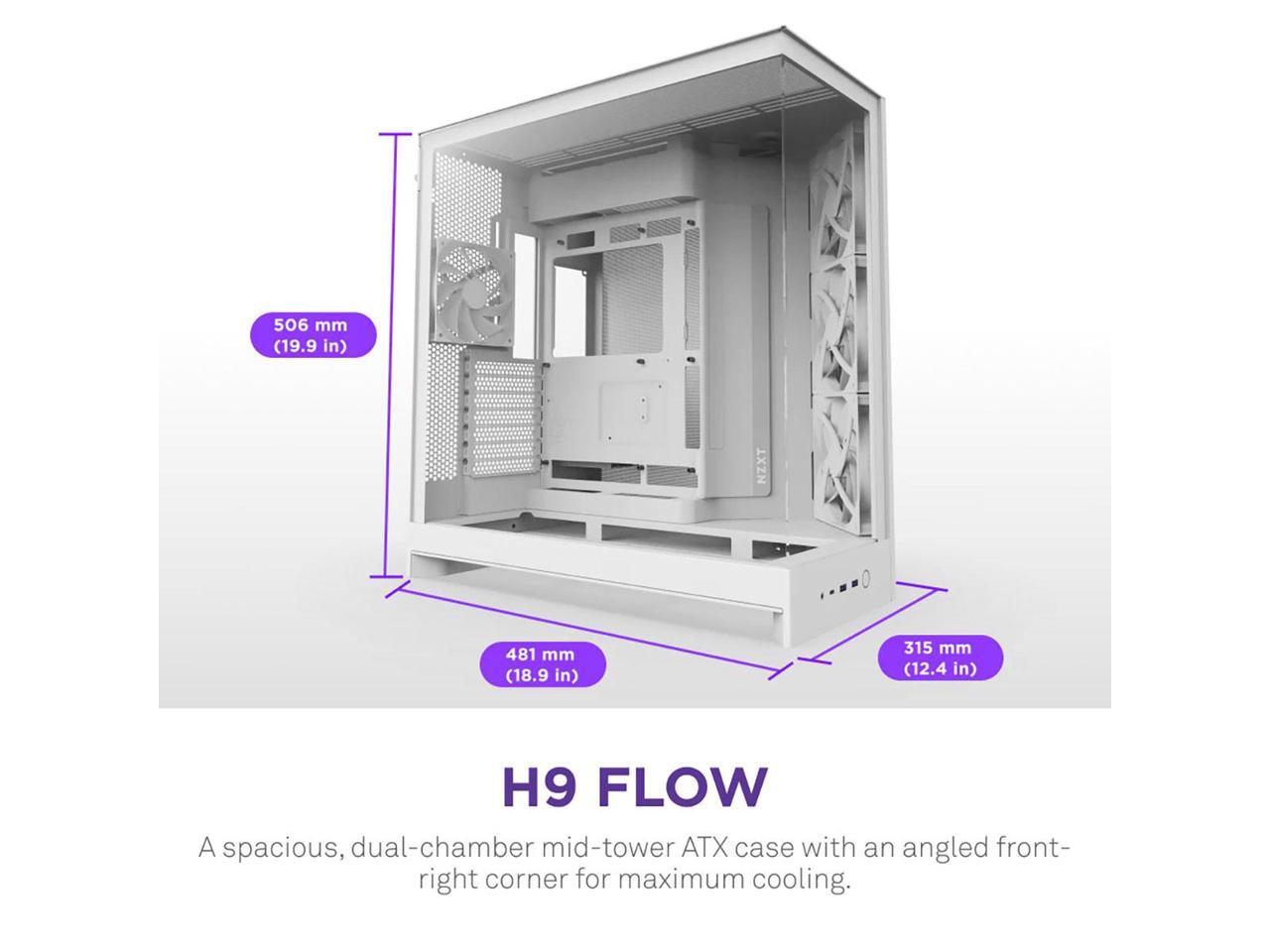 NZXT H9 Flow (2025) Large Dual-Chamber ATX Mid-Tower Airflow PC Case Includes 3 x 140mm & 1 x 120mm Fans 420mm Radiator Support Tempered Glass Back-Connect Ready White