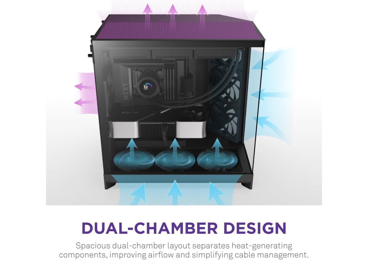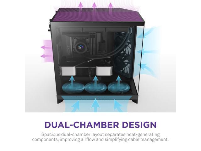 NZXT H9 Flow (2025) Large Dual-Chamber ATX Mid-Tower Airflow PC Case Includes 3 x 140mm & 1 x 120mm Fans 420mm Radiator Support Tempered Glass Back-Connect Ready Black