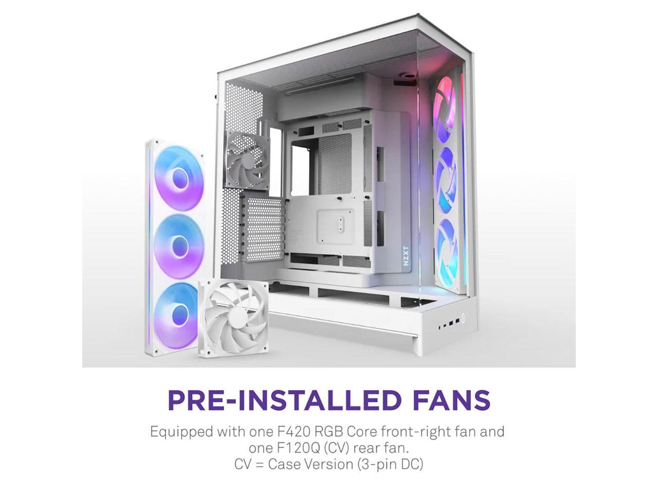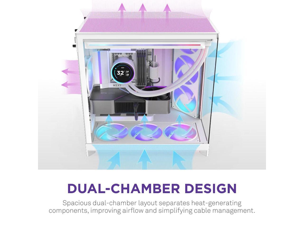 NZXT H9 Flow RGB (2025) Large Dual-Chamber ATX Mid-Tower Airflow PC Case Includes 1 x 420mm RGB Fan Unit & 1 x 120mm Fan 420mm Radiator Support Tempered Glass Back-Connect Ready White