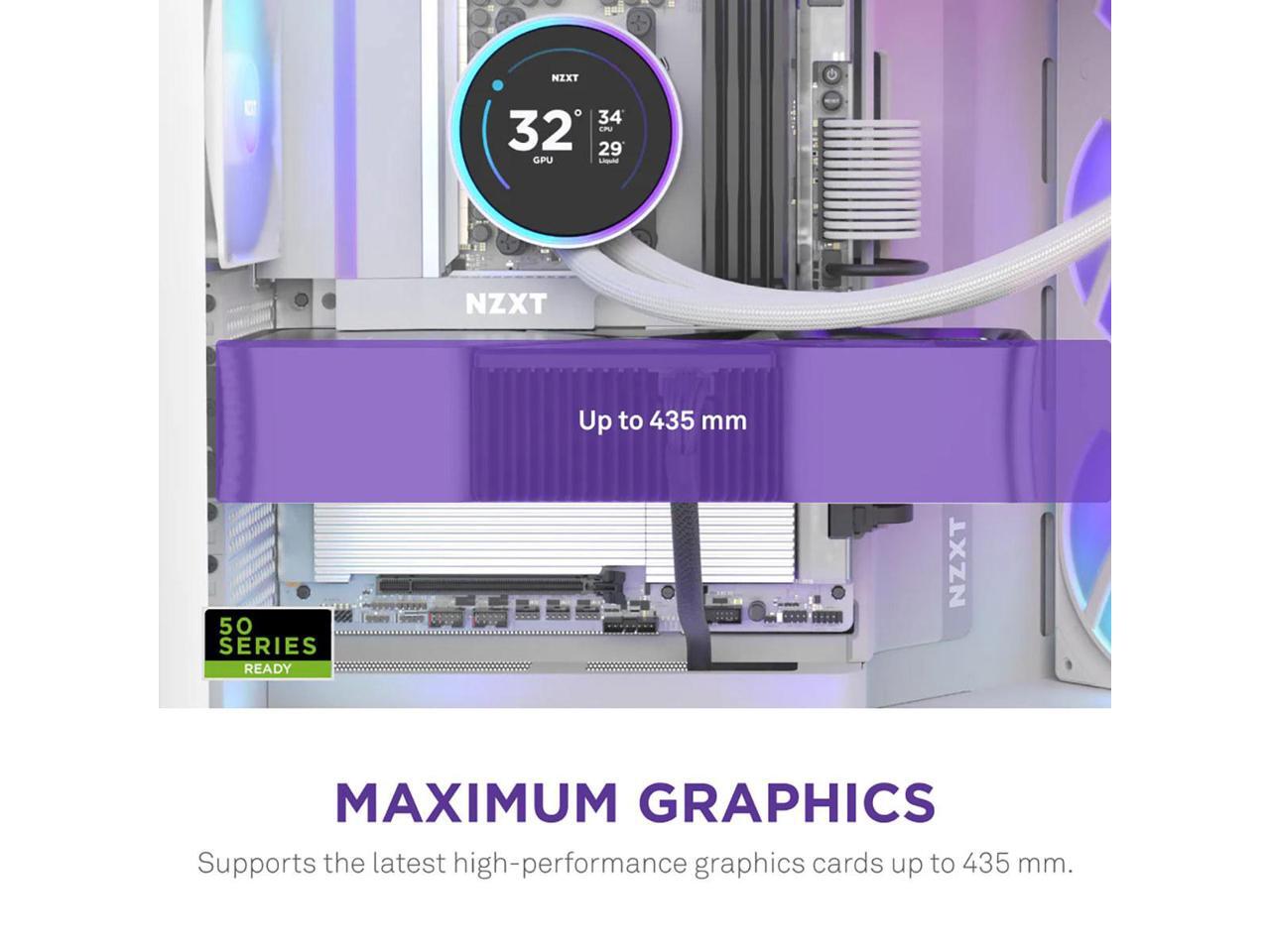 LARGE RADIATORS & GPUS Fits up to a 420mm radiator on the top and front-right, with plenty of clearance for high-end graphics cards.