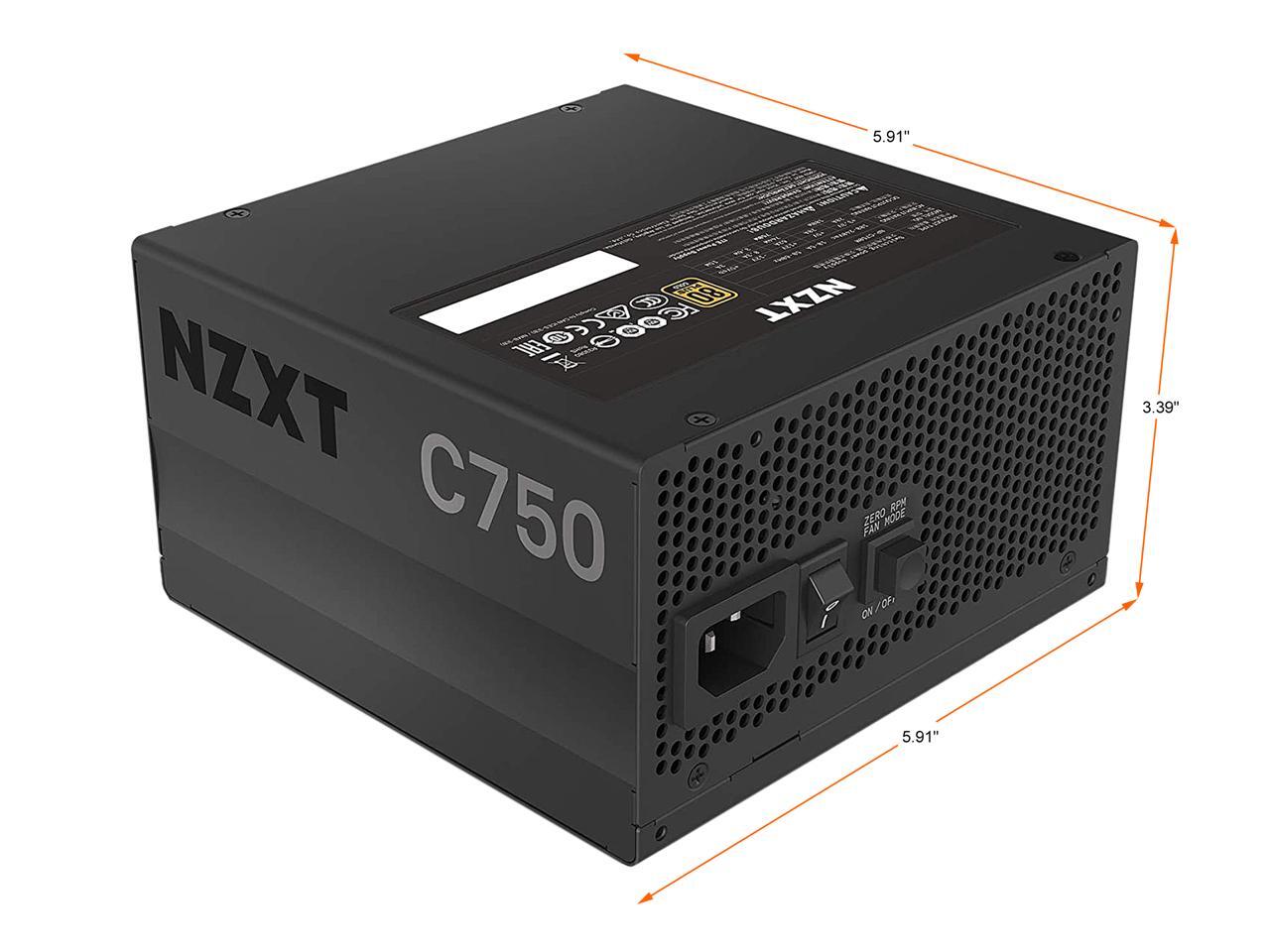 NZXT C750 NP-C750M 750 Watt PSU 80+ Gold Certified Hybrid Silent Fan Control Fluid Dynamic Bearings Modular Design Sleeved Cables ATX Gaming Power Supply, 10 Year Warranty