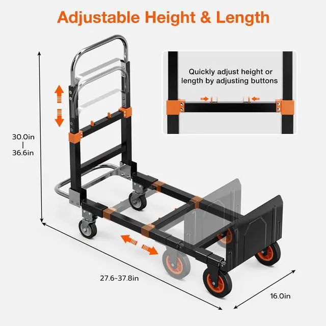 With three easily adjustable positions, you can customize the hand truck to suit your specific task and body height. The adjustable handle provides a comfortable grip, reducing strain on your hands and back during extended use. Whether you're pushing, pulling, or lifting, the hand truck's ergonomic design ensures maximum comfort and efficiency. This feature is especially beneficial for those with physical limitations or for tasks that require repeated use of the hand truck