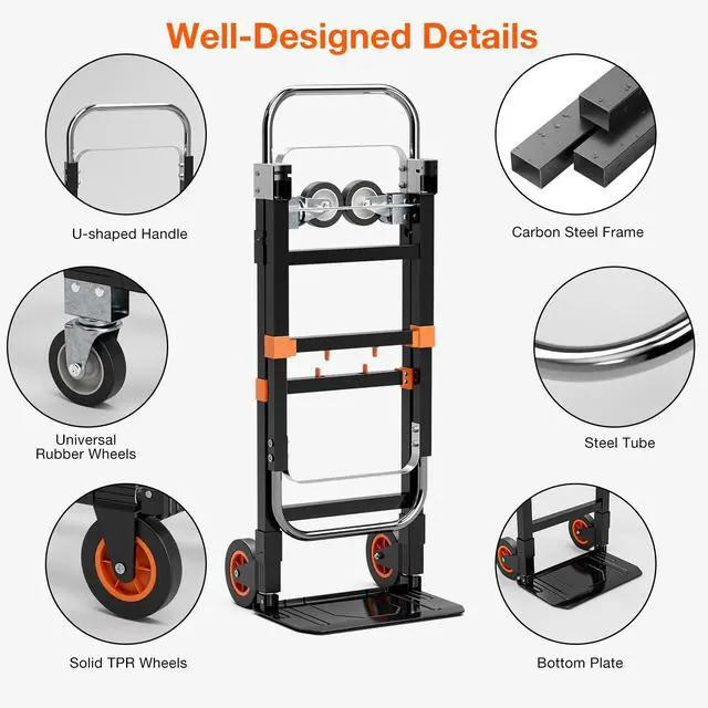 This hand truck is truly a jack - of - all - trades, suitable for a wide range of applications. In the warehouse, it can be used to transport pallets, inventory, and equipment. During a home move, it will effortlessly handle furniture, boxes, and appliances. In the garden, it's perfect for hauling soil, plants, and gardening tools. Its versatility makes it an essential addition to any toolkit, providing a convenient and efficient solution for all your moving and hauling needs