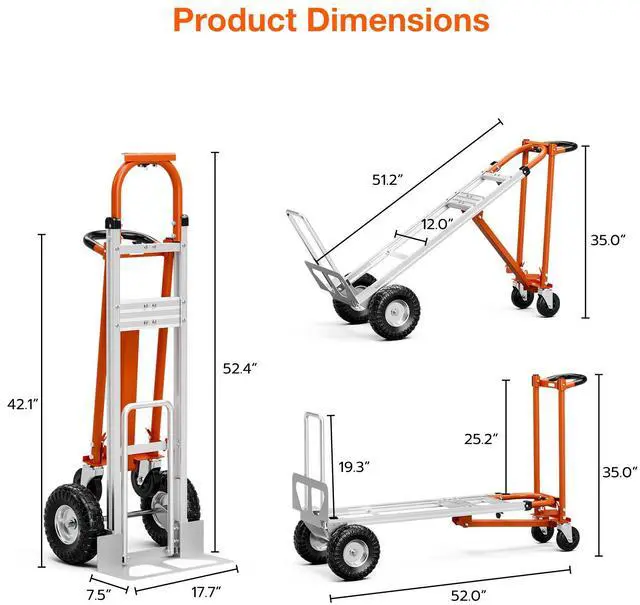 With three easily adjustable positions, you can customize the hand truck to suit your specific task and body height. The adjustable handle provides a comfortable grip, reducing strain on your hands and back during extended use. Whether you're pushing, pulling, or lifting, the hand truck's ergonomic design ensures maximum comfort and efficiency. This feature is especially beneficial for those with physical limitations or for tasks that require repeated use of the hand truck