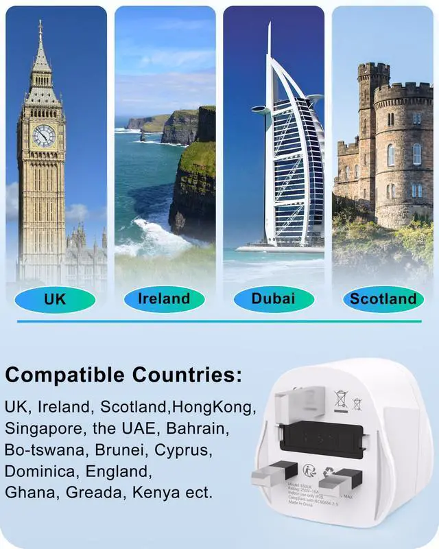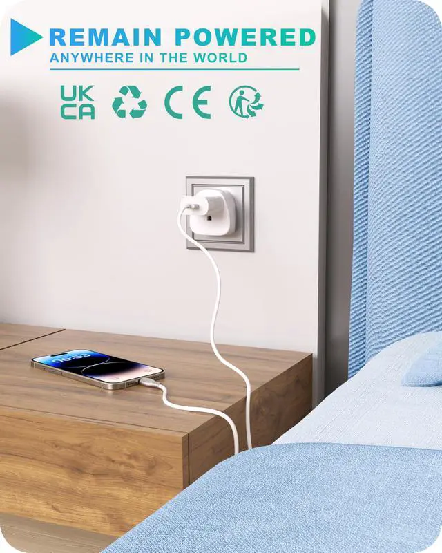 This UK power adapter is specifically designed for travel.