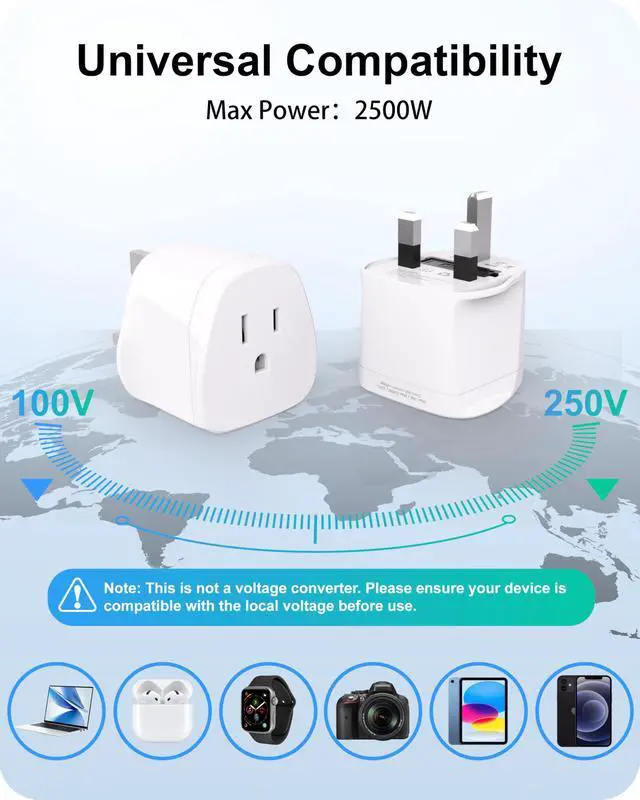 2 x US to UK Travel Adapter